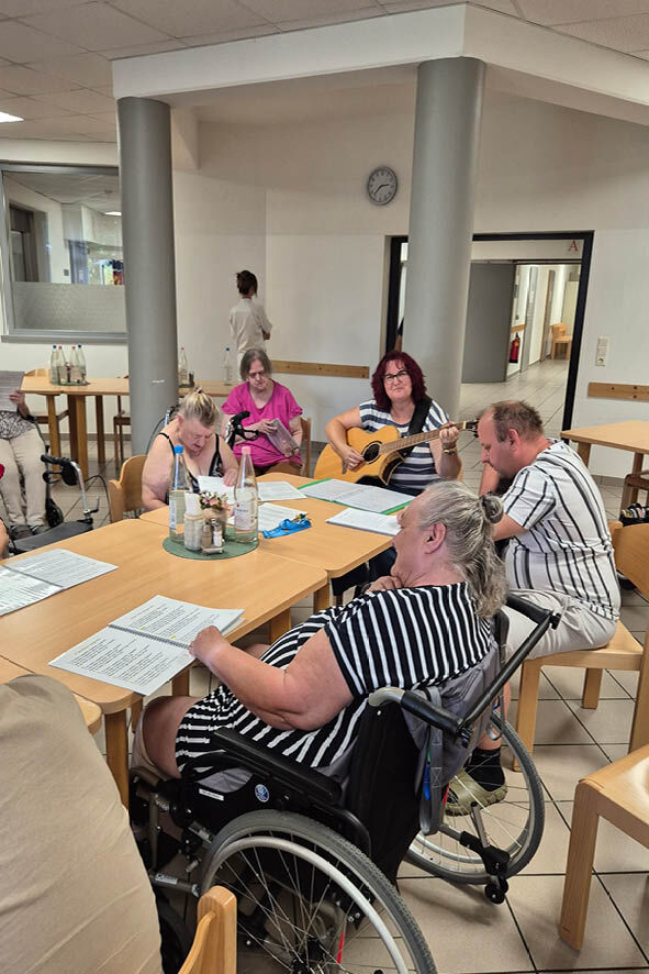 Wöchentlich wird im Pflegebetrieb Margarethenhof (ein Partner der SANLAS Holding) kräftig gesungen! Unter der professionellen Anleitung von Fachsozialbetreuerin Elke Pölzl stimmen die Bewohner:innen mit Begeisterung altbekannte Lieder an. Mit den liebevoll gestalteten Liedermappen schwelgen alle in Erinnerungen, und jedes Lied bringt kleine Geschichten aus früheren Zeiten zurück.