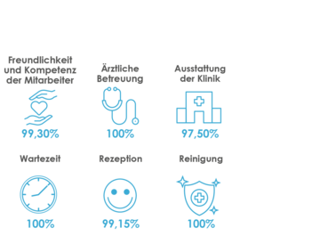 Durch eine kontinuierliche interne und externe Überwachung all dieser Qualitätsmerkmale wird der Klinikstatus aufrechterhalten. Ihre Operationen werden bei uns unter Einhaltung höchster Hygiene- und Qualitätskriterien durchgeführt. Durch die ständige Anwesenheit eines Anästhesisten haben Sie einen erfahrenen Facharzt an Ihrer Seite, der sich um Ihre Sicherheit und Ihr Wohlergehen kümmert. So kann sich der Chirurg voll und ganz auf die Operation und das Erzielen eines schönen Ergebnisses konzentrieren.